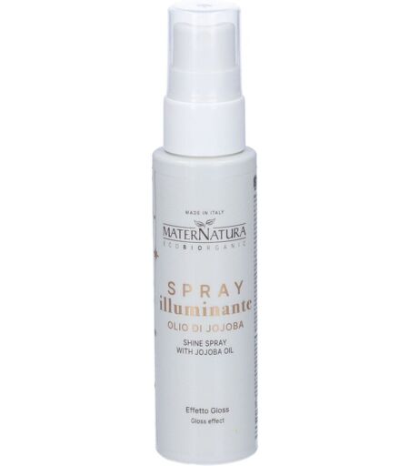 MaterNatura Spray illuminante Olio di Jojoba Spray gloss quotidiano con azione anticrespo, da vaporizzare sui capelli sempre a fine asciugatura per completare il look e donare lucentezza. Modo d'uso: Vaporizzare su tutta la chioma a capello asciutto subito dopo la piega o durante i giorni successivi alla piega per riprendere lo stile e ridonare luminosità alla chioma. Agitare prima dell’uso. Ingredienti: Aqua [Water] (Eau), Glycerin, Lauryl lactate, Behenamidopropyl dimethylamine, Simmondsia chinensis (Jojoba) seed oil, Argania spinosa kernel oil, Prunus amygdalus dulcis (Sweet almond) seed extract (*), Linum usitatissimum (Linseed) seed extract (*), Rosa damascena flower extract (*), Adansonia digitata leaf extract, Paeonia officinalis flower extract, Sambucus nigra flower extract, Hydrolyzed soy protein,Propanediol, Sodium hyaluronate,Urea, Benzyl alcohol, Panthenol, Lactic acid, Phenethyl alcohol, Parfum [Fragrance], Undecyl alcohol, Benzyl salicylate, Limonene, Tetrasodium glutamate diacetate, Alpha-isomethyl ionone, Citronellol, Hexyl cinnamal, Linalool *from Organic Agriculture *da Agricoltura Biologica ...
