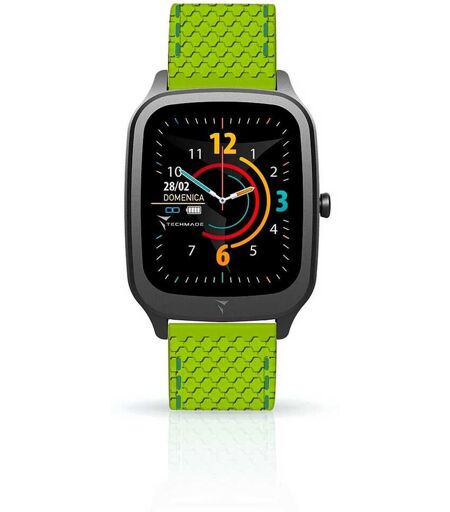 Smartwatch Da Uomo Di Techmade Della Collezione Vision. La Cassa È Di Forma Rettangolare E Di Colore Argento. Il Cinturino È Di Colore Nero Con Rifinitura Verde. La Chiusura È Ad Ardiglione. Cpu: Rtl8762dk. Display: 1. 65" Color Ips Full Touch 240x295px. ...