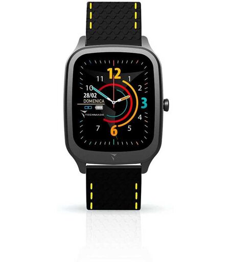 Smartwatch Da Uomo Di Techmade Della Collezione Vision. La Cassa È Di Forma Rettangolare E Di Colore Argento. Il Cinturino È Di Colore Nero Con Rifinitura Gialla. La Chiusura È Ad Ardiglione. Cpu: Rtl8762dk. Display: 1. 65" Color Ips Full Touch ...
