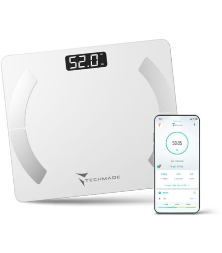 TECHMADE BILANCIA PESAPERSONE SMART DIGITALE 180KG BIANCA Bilancia Pesa Persona Digitale Bilancia Impedenziometrica Intelligente Wireless per IOS e Android con Indici di Misurazione Massa Grassa, Massa Magra e Metabolismo Basale ...
