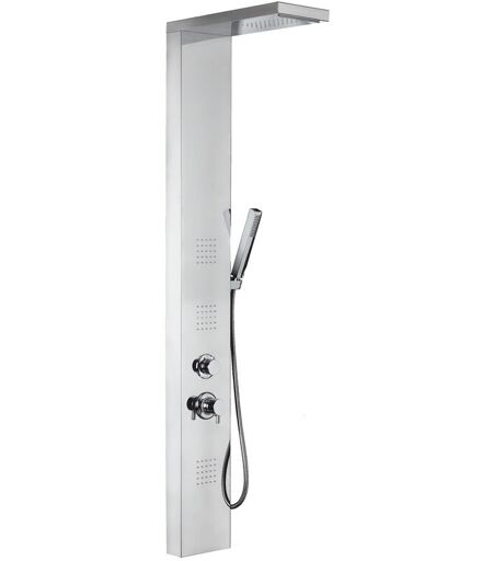 Colonna Doccia Broadway 10 Metaform: 101F83100 Colonna doccia Broadway 10 realizzata in acciaio inox AISi 304 adattabile a tutti box doccia , con sistema anticalcare. Design perfetto per bagni in stile moderno Caratteristiche: Materiale: Acciaio Inox AISI 304 Finitura: Lucido 4 Funzioni : Soffione - Getto effetto Cascata - Doccetta - Getti orizzontali "massage" Flessibile in acciaio inox doppia aggraffatura estensibile 150 - 200 cm Pressione: Minima 1.5 Bar Dimensioni: 20 - 160 h - 48 cm ...