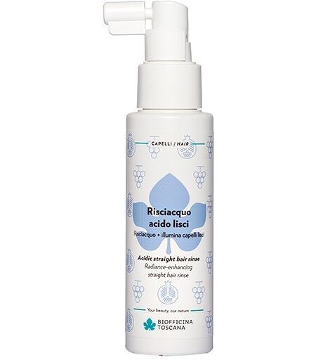 Risciacquo acido Lisci 2 in 1 Biofficina Toscana: Risciacquo acido lucidante, idratante e ravvivante.Disciplina, idrata e lucida, favorendo un'azione lisciante ed illuminante.Per capelli lisci.Con uva, melograno, fiordaliso, calendula, fitocheratina e pantenolo.Vaporizza su capelli umidi dopo il lavaggio. Il Risciacquo acido Lisci 2 in 1 di Biofficina Toscana è un trattamento 2 in 1 che lucida, idrata e ravviva il capello liscio, favorendo un'azione lisciante ed illuminante. A base di uva, melograno, fiordaliso, calendula, fitocheratina e pantenolo che rendono la chioma lucente, morbida e leggera. Consigli d'uso:Vaporizza su capelli umidi dopo il lavaggio. INCIAqua [Water], Punica granatum fruit juice*, Panthenol, Vitis vinifera (Grape) fruit extract*, Hydrolyzed rice protein, Glycerin, Hydrolyzed hemp seed extract, Calendula officinalis flower extract*, Centaurea cyanus flower water*, Pelargonium graveolens flower oil, Caprylyl/capryl glucoside, Citric acid, Benzoic acid, Glyceryl caprylate, Polyglyceryl-6 oleate, Sodium cocoyl glutamate, Benzyl alcohol, Phenoxyethanol, Dehydroacetic acid, Sodium surfactin, Citronellol, Geraniol, Sodium hydroxide,Sodium benzoate, Linalool, Potassium sorbate, Citral, Limonene, Tocopherol. *da agricoltura biologica Controlliamo con cura le descrizioni dei nostri prodotti ma alcuni dati riportati sulla confezione del prodotto (INCI, consigli di utilizzo, certificazioni) possono variare in base agli aggiornamenti dei produttori. Non sempre questi aggiornamenti ci vengono comunicati e può capitare che le informazioni sulla confezione differiscano da quelle riportate qui sul sito. Ti chiediamo perciò di fare sempre riferimento alle informazioni che trovi sul prodotto. Le immagini riportate hanno uno scopo puramente indicativo e possono essere soggette a variazioni da parte dei produttori. ...