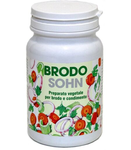 BRODO SOHN - Preparato per brodo e condimento a ridotto contenuto di sodio e praticamente privo di grassi (0 3%). Preparato vegetale con proteine vegetali e verdure (sedano carote cipolle e prezzemolo). Rispetto al dado tradizionale non contiene grassi e apporta meno della metà del sale mediamen… ...