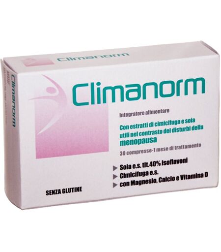Climanorm Integratore alimentare Benessere fisiologico della donna durante la menopausa Isoflavoni + Cimicifuga racemosa estratto secco con Magnesio, Calcio e Vitamina D3 Il prodotto favorisce il contrasto dei disturbi della menopausa e contribuisce al man ...