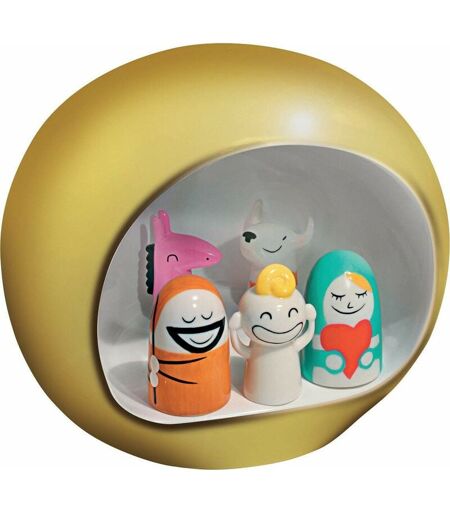 Alessi AMGI10 gd - Presepe di Design con Riproduzione della Grotta e Statuine in Porcellana Decorate a Mano, Oro, 5 pezzi -