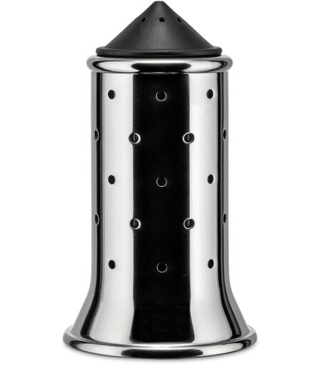 Alessi Mgsal b Spargisale In Acciaio Inossidabile 18/10 Lucido Con Tappo e Coperchietto In Pa, Nero, 6.32 x 6.32 x 11.3 cm 213.19 grammi -
