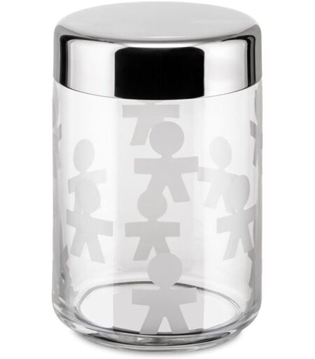 Alessi AKK37 Girotondo Barattolo Ermetico in Vetro Serigrafato con Coperchio in Acciaio Lucido