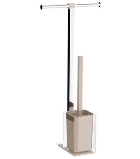 GEDY Colonnina portarotolo e scopino wc acciaio inox e resine termoplastiche serie Rainbow RA32 Tortora Chiaro Trasparente