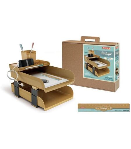Porta in ufficio o in casa i romantici colori Vintage e goditi le nostalgiche sfumature di questi complementi: l'azzurro della carta da zucchero, il caldo colore del caramello e il bianco cremoso del latte ...E la mente torna agli anni 50 ! - 2 portacorrispondenza con distanziali - 1 bacinella - 1 portapenne - 1 righello cm.16 ...