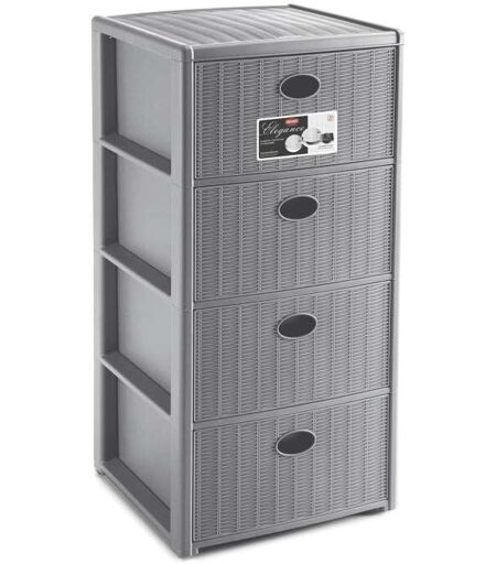 BIGHOUSE IT Stefanplast Cassettiera Elegance 4 Cassetti Grigia 40x40x80 cm - Mobile Versatile in Midollino