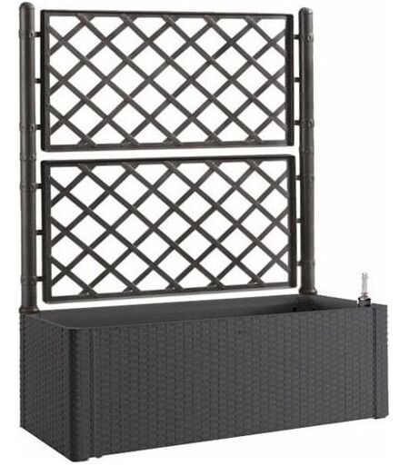 Struttura plastica resistente Dimensioni cm 100x43 h 142 Decoro design simil rattan Spalliera grigliata colore antracite Riserva acqua con indicatore di livello Adatta per rampicanti ...