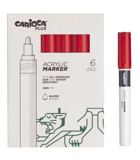 CARIOCA Plus pack di 6 pennarelli acrilici -- punta 2mm -- colore rosso -
