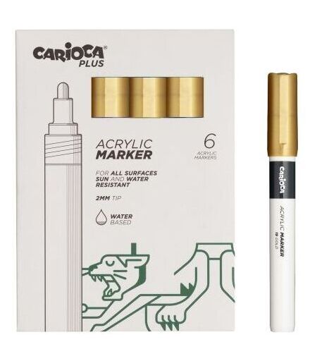 CARIOCA Plus pack di 6 pennarelli acrilici -- punta 2mm -- colore oro -