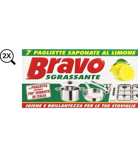 REPLOOD 2x Bravo Detergente Sgrassante al Limone Pagliette Saponate 2x7 Totale 14 Pezzi