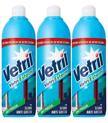 REPLOOD 3x Vetril Detersivo Detergente Anti pioggia Con Scudo Anti Goccia Vetri Esterni