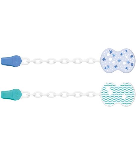 CHICCO - CLIP CATENELLA - Grazie alla pratica clip con catenella, dotata di aggancio morbido, il succhietto è sempre pulito e a partata di mano. Sterilizzabile a caldo e a freddo. Gancio morbido. Colore: azzurro. Cod.0000408300000 ...