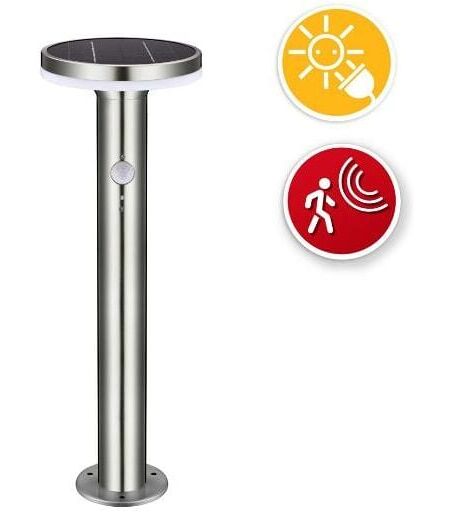 Lampada solare da terra Devils Tower Velamp SL340-6W 4000K Funzionamento: la lampada si ricarica di giorno, sfruttando i raggi solari.3 modalità di uso: 1) sempre accesa: la luce si accende automaticamente al calare del sole per 8 ore.20 lumen continui: la lampada si usa allora come un lampione; si spegnerà automaticamente all'alba.2) modalità mista: la luce si accende automaticamente al calare del sole: 20 lumen continui; in più si attiva il rilevatore di movimento: 400 lumen per 8 secondi qualora rivelerà un movimento; si spegnerà automaticamente all'alba.3) modalità solo rilevazione: la lampada si accenderà per 8 secondi a 600 lumen qualora rileverà un movimento nella zona coperta; funge sia da luce di cortesia che da luce di sicurezza. Munito di panello solare 6V 0.3a monocristallino e batteria Li-Ion 2200mAh. Autonomia: fino a 8 ore in base alla carica ricevuta durante il giorno. Specifiche Tipo Alimentazione fornita pannello solareBatteria (tipo) 18650Batteria (capacità in mAh) ...