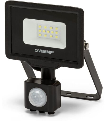 VELAMP Proiettore LED SMD 10W – Sensore di movimento - Impermeabile IP44 – Bianco Freddo 6500K - Colore Nero - Ideale per esterni come faro di