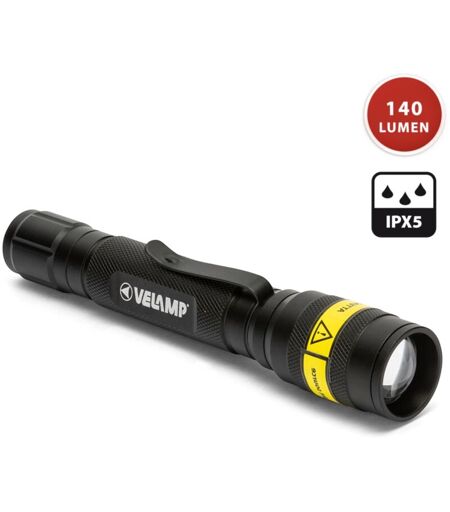 Torcia tattica LED, intensità luminosa 140 Lumen. Torcia LED in alluminio anodizzato con funzione zoom: consente di avere una luce diffusa (visione ravvicinata) e una luce precisa (visione profonda). Resistente agli urti ed alle intemperie (ipx5): può essere utilizzato sia all'interno che all'esterno. Pratico interruttore ON/OFF tattico in gomma. LED 3W CREE XPE R3 (140 lumen).Autonomia: 12 ore; portata: 120 metri. Ideale per un uso professionale (elettrici, idraulici, elettrauto) ma anche per le attività all'esterno (camping). Caratteristiche del prodotto Alimentazione Pila Colore Nero Marca Velamp Dimiensioni prodotto Larghezza: 0.156 m. Altezza: 0.028 m. Profondit: 2.8 cm. Peso: 0.12 Kg. Dimensioni Imballo Larghezza: 0.0 cm. ...