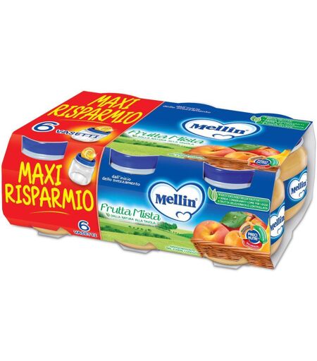 - 6x100g - DESCRIZIONE PRODOTTO: - L'Omogenizzato Frutta Mista Mellin è una deliziosa combinazione di purea di frutta mista, composta da mela, banana, pesca e albicocca. Questo alimento per l'infanzia è indicato a partire dal 4° … ...