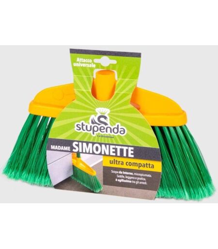 Scopa Madame Simonette è una scopa alta da interni. La sua forma particolarmente sottile ed ultra compatta, la rende agilissima tra gli arredi entrando anche negli spazi più ristretti. Le setole micropiumate catturano e trattengono la polvere. L'inclinazione delle fibre permette la pulizia perfetta anche degli angoli. Attacco del manico universale. Lavaggio: lavabile a getto d'acqua a temperatura non superiore a 60°C. Lasciare asciugare con le setole rivolte verso l'alto. Composizione: setole 35% PVC, 35% PET, 30% polipropilene, assicella 50% polipropilene, 50% polietilene. Prodotto fabbricato in Egitto.L'immagine del prodotto ha solo scopo indicativo. Il colore dell'articolo potrebbe differire. ...