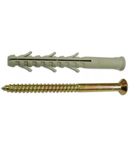 Tassello in nylon con 3 alette - Completo di vite testa svasata piana - Applicazione: calcestruzzo, pietra, mattone pieno, semipieno, forato gasbeton ...