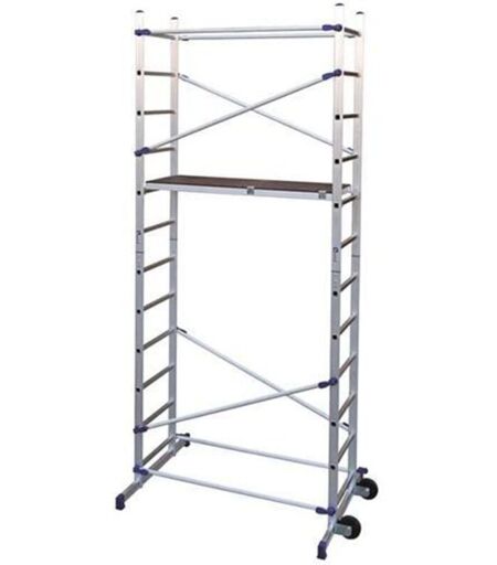 TRABATTELLO PN/CLIC FACAL L. x P. x H. : 156x114x365 cm. Portata : 150 kg. In alluminio a due alzate con innesti d'acciaio rivestiti di speciali resine - Collegamenti orizzontali e diagonali istantanei con espansori nei fori dei gradini - Lunghe leve di facile uso - Altezza di lavoro utile 4,36 mt - Montanti: 24x60 mm - Gradini: 30x30 mm - Base: 6 gr - Sopralzo: 6 gr - Piano di lavoro: 51x143 cm - 2 ruote da Ø150 mm - Può andare vicino al muro grazie alla batta stabilizzatrice a doppia posizione - Tiranti rapidi antisfilo - Posizione zoppa per scale - Peso 34,4 kg ...
