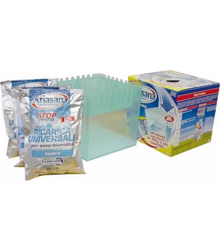 Deumidificatore a cristalli attivi - Ideale per: cantina, taverna, garage - Comprendente 2 ricariche da 450 gr. Articolo Kit vaschetta Profumazione ...