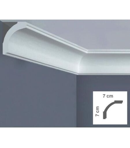 CORNICE SOFFITTO POLISTIRENE MM 70X70 2MT "I 765 BOVELACCI" Misura angolo : 70x70 mm. Lunghezza : 2 mt. XPS Polistirene estruso ...