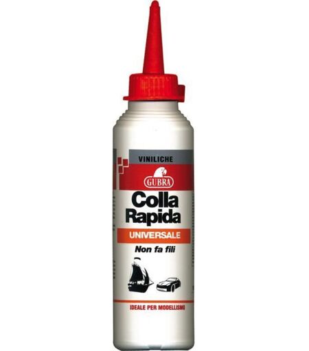 COLLA UNIVERSALE RAPIDA GUBRA 100ML Contenuto : 100 ml. Colore : Trasparente Adesivo universale in gel trasparente - Ideale per il modellismo - A presa rapida - Incollaggio forte - Non sporca e non fa fili ...
