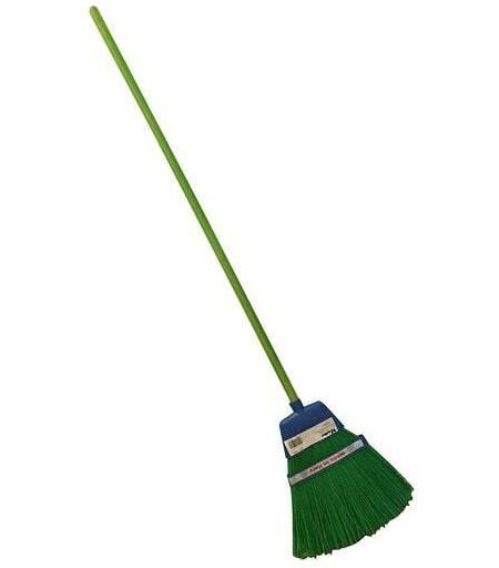 Scopa con manico - Base il polietilene, fibra in polipropilene, manico in legno colore verde ...