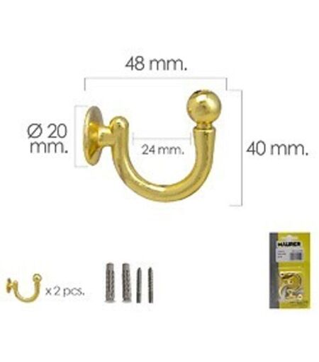MAURER - 05391010 Gancio a vite in ottone 48 mm. con tasselli e viti (blister 2 pezzi), Multicolore
