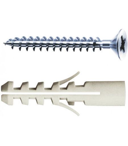 Tassello in nylon con vite TSP-pozidriv - Fissaggi leggeri - Applicazioni: calcestruzzo, cemento, mattone forato-pieno, pietra, laterizio ...
