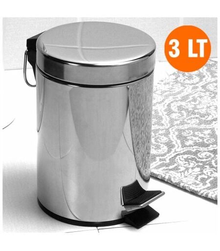 Pattumiera a pedale in acciaio inox cromato con capacita' di 3 litri. Con un'altezza di circa 26 cm di altezza e un diametro di circa 17 centimetri, una linea pulita ed elegante, e' l'ideale da utilizzare in bagno, in camera, in cucina. Apertura a pedale antiscivolo, cestello interno estraibile per rapida pulizia. ...