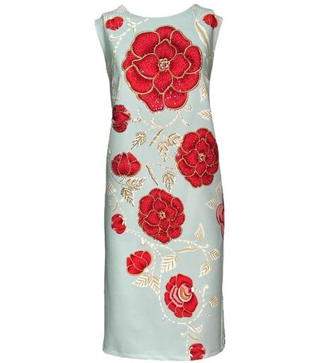 Vestito a tubino celeste con stanpa fiori e micro strass ...