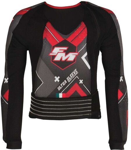 Pettorina Bambino Moto Cross Enduro FM Racing ULTRA SLEEVE KIDS NeroScheda tecnica:Protezione super leggera realizzata in AIR NETProtezione interna anteriore in MICRO-SHOCKProtezione interna schiena e maniche in SAS-TECCertificazioni:Anteriore: CE-EN1621-3 2018 - Level 2Posteriore: ...