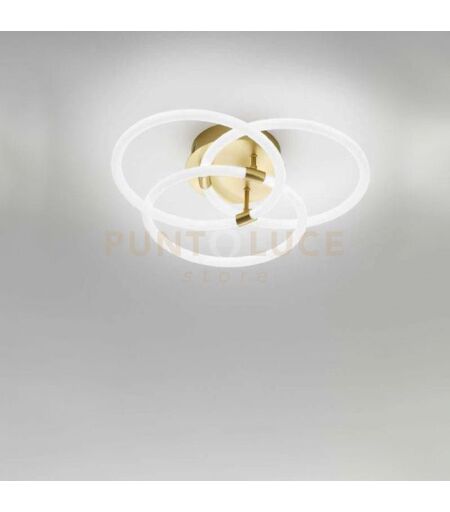Lampada A Soffitto Orientabile Con Montatura In Oro Spazzolato E Diffusore Composto Da Tre Cerchi In Vetro ...