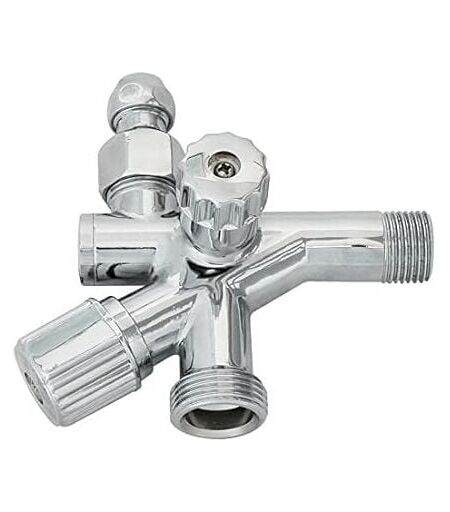 Rubinetto sottolavabo attacco lavatrice o lavastoviglie con filtro e snodo, combinato a doppia chiusura, uscita 3/8 - 10 e 3/4,con vitone ad asta fissa con maniglia in ABS cromato ...