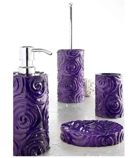 Set accessori Baccarat viola Accessori bagno da appoggio in resina laccata lucida con decoro a rilievo "Viola baccarat" . Il set è composto solo da bicchiere e porta sapone ...
