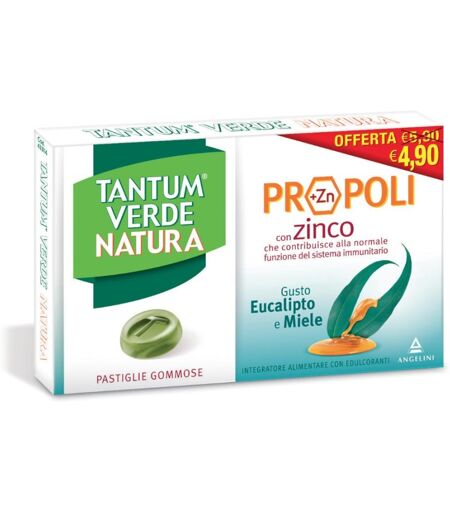 Angelini (A.C.R.A.F.) Spa Tantum Verde Natura Propoli con Zinco - 15 Pastiglie Gommose Gusto Eucalipto e Miele