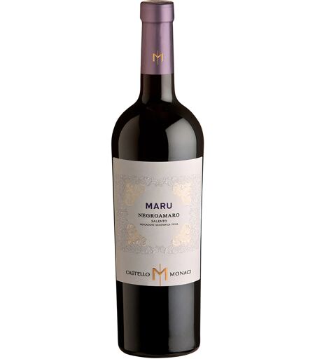 Maru è stato uno dei primi prodotti di Castello Monaci; è un monovitigno basato su uno dei più importanti autoctoni del territorio: il Negroamaro. È aperta una diatriba sul significato del nome del vitigno: qualcuno ritiene che sia la ripetizione della parola nero in due lingue: “niger” in latino e “mavros” in greco; altri affermano che amaro indichi quel senso erbaceo e spesso un po’ ruvido del retrogusto del vino. Maru nel dialetto salentino significa “severo”, “scuro” per una certa austerità che il vitigno stesso tende ad esprimere. ...