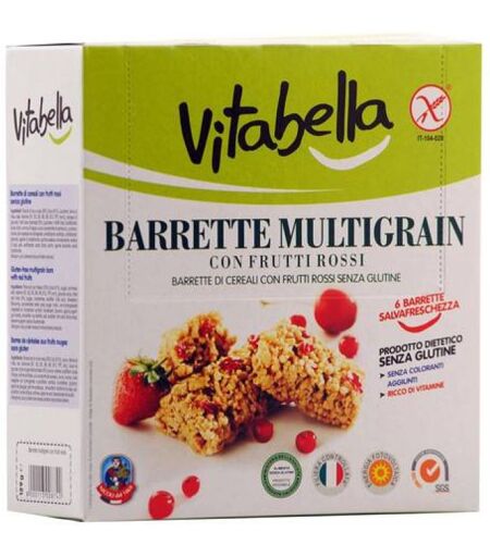 Vitabella - MULTIGRAIN - CON MIRTILLI ROSSI - Descrizione Barrette ai mirtilli rossi, con mais. A basso contenuto di colesterolo. - Ingredienti Acidificante (acido citrico, aromi), agente di rivestimento (gomma arabica), agente lievitante (sodio bicarbonato), emulsionante (lecitina di soia), olio v… ...