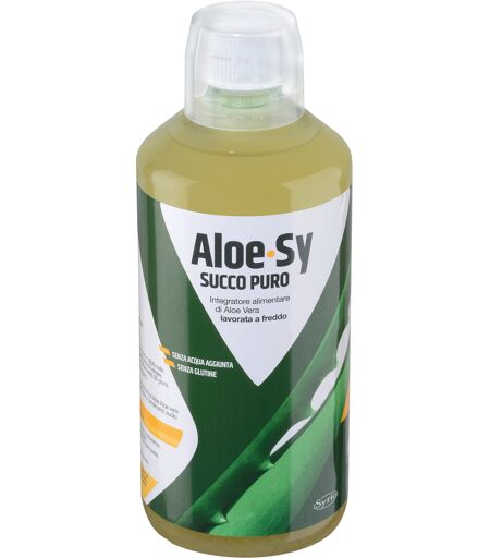 Aloe.Sy SUCCO PURO Integratore alimentare a base di puro succo di Aloe Vera non diluito ottenuto dalla parte interna carnosa delle foglie di Aloe lavorate a mano e a freddo. La polpa gelatinose ottenuta dalle foglie viene poi raffinata per ottenere un succo ricco e concentrato che mantiene inaltera… ...