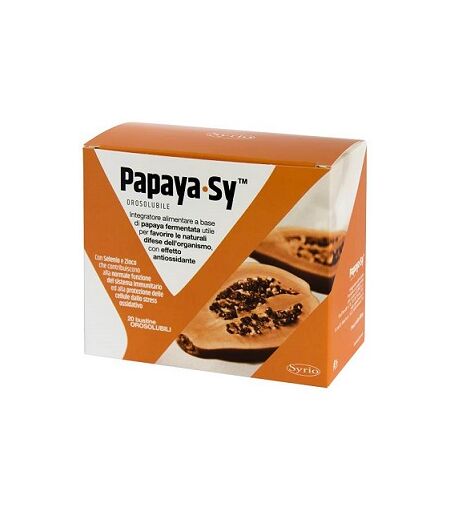 PAPAYA - SY - Integratore alimentare di papaya fermentata in forma di polvere ottenuta dal succo del frutto che possiede naturali proprietà antiossidanti e favorisce le naturali difese dell'organismo oltre a sostenere la funzione digestiva. Lo Zinco ed il Selenio contribuiscono alla normale funzion… ...