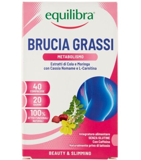 Gli integratori non sostituiscono un’alimentazione equilibrata e variegata e uno stile di vita sano. Perdita di Peso® Brucia Grassi Equilibra® è un integratore alimentare di estratto di semi e polvere di foglie di Moringa e Cassia Nomame per l’equilibrio del peso corporeo. La sua formulazione è arricchita dall’estratto di Cola, ricco in caffeina, per lo stimolo del metabolismo e per la sua azione tonica contro la stanchezza fisica e mentale. Perdita di Peso® Brucia Grassi Equilibra® contiene inoltre L-Carnitina. Ingredienti:Agenti di carica: cellulosa microcristallina, calcio fosfato; Moringa (Moringa oleifera Lam., foglie) polvere, Cola (Cola nitida (Vent.)Schott. et Endl., semi) estratto secco titolato al 10% in caffeina, L-carnitina tartrato, Cassia (Cassia mimosoides var. nomame (Siebold) Makino,erba) estratto secco titolato all’8% in flavonoidi, Moringa (Moringa oleifera Lam., semi) e.s. titolato al 60% in proteine, agenti antiagglomeranti: biossido di silicio, sali di magnesio degli acidi grassi; stabilizzante: carbossimetilcellulosa sodica reticolata. Analisi media Per 2 compresse Moringa foglie plv 600 mg Moringa semi e.s. 50 mg Cola Nitida e.s. 200 mg - di cui Caffeina 20 mg Cassia Nomame e.s. 100 mg L-Carnitina 100 mg Assunzione consigliata: 1 compressa prima dei pasti principali, in totale 2 compresse al giorno. Si consiglia di proseguire con costanza l’assunzione del prodotto nel contesto di una dieta ipocalorica ed adeguata attività fisica. Avvertenze: Non superare la dose giornaliera raccomandata.Tenere fuori dalla portata dei bambini al di sotto dei tre anni. Il prodotto deve essere utilizzato nell'ambito di una dieta ipocalorica adeguata seguendo uno stile di vita sano con un buon livello di attività fisica. Se la dieta viene seguita per periodi prolungati, superiori alle tre settimane, si consiglia di sentire il parere del proprio medico. Contiene caffeina (20 mg per dose max giornaliera). Non raccomandato per i bambini, durante la gravidanza e l'allattamento. Non superare un apporto massimo giornaliero di caffeina da tutte le fonti pari a 400 mg. Conservazione: Conservare a temperatura inferiore a 30°C; evitare l’esposizione a fonti di calore localizzate, ai raggi solari e tenere al riparo dall’umidità. Il periodo di validità si riferisce al prodotto correttamente conservato, in confezione integra. Contenuto netto: 40 compresse = 36 g Produttore:Equilibra S.r.l. via Plava 74, Torino (To) Italia ...