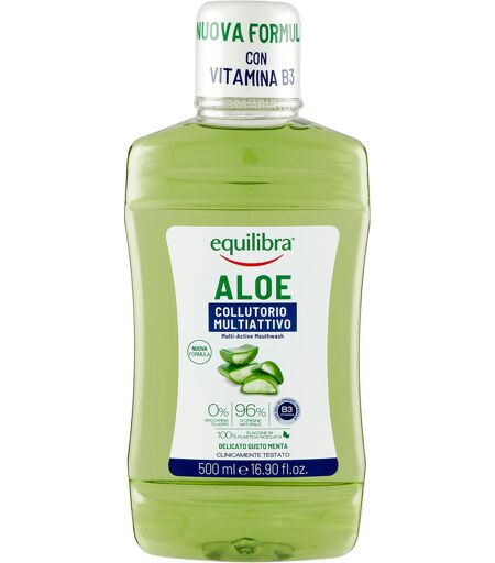 Equilibra Aloe Collutorio Multiattivo combina l'azione lenitiva dell'Aloe Vera, presente in formula in quantità pari al 10% del succo, della Malva e della Vitamina B3 all'azione antisettica dell'Olio di Tea Tree. Lo Xilitolo inoltre, riducendo l'acidità del cavo orale, contrasta la proliferazione dei batteri responsabili della formazione di placca e carie.Il Tetrapotassio Pirofosfato protegge i denti dal tartaro, il Mentolo rinfresca naturalmente il cavo orale. Utilizzato con regolarità, protegge i denti dalla carie e dal tartaro, aiuta a prevenire i disturbi gengivali e assicura un alito fresco.Multiattivo:denti protetti Benessere delle gengiveAlito frescoCosa contiene: Aloe Vera, Malva, Vitamina B3:azione lenitivaPotassio Citrato:aiuta a ridurre la sensibilità dentaleTetrapotassio Pirofosfato: protegge dal tartaroOlio di Tea Tree: antisettico naturalePompelmo: antiossidanteXilitolo: protegge dalla placcaMentolo: rinfrescante naturale.Senza:- alcol- saccarina- fluoro- SLS- parabeni Adatto ai vegani Clinicamente testato Made in Italy- Prodotto in Italia 96% Ingredienti di origine naturaleSenza:- saccarina- SLS- fluoro ...