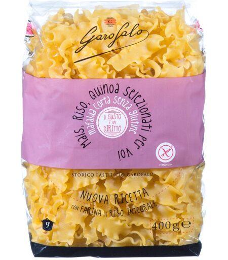 Garofalo - mafalda senza glutine - Descrizione Pasta dietetica senza glutine con mais, quinoa, riso. Specificatamente formulata per celiaci. Trafilata al bronzo. Modalità d'uso Cuocere in abbondante acqua salata bollente per il tempo indicato sulla confezione (9 minuti). Si consiglia di non affidar… ...