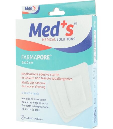 meds Med's Farmapore Medicazione Autoadesiva Sterile con Cerotto 10x9 cm 5 Pezzi