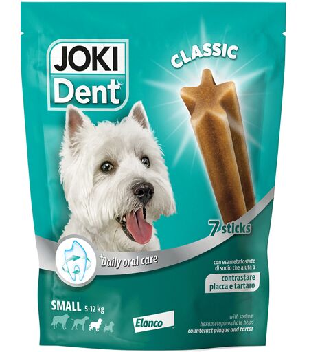 Joki Dent Classic è l’alimento complementare per contribuire ogni giorno alla buona igiene orale del cane. Grazie ad ingredienti specifici come l'esametafosfato di sodio, Joki Dent Classic favorisce la salute dei denti e aiuta a contrastare la formazione della placca dentaria e del tartaro. Inoltre, grazie alla sua consistenza e alla particolare forma a stella, questo gustoso snack per cani favorisce una masticazione prolungata e contribuisce alla rimozione dei residui di cibo dai denti. INGREDIENTI: Cereali, carni e derivati, glicerolo, estratti di proteine vegetali, sostanze minerali (esametafosfato di sodio 0,6%), sottoprodotti di origine vegetale. ISTRUZIONI D'USO: Per qualsiasi taglia, 1 bastoncino al giorno. ...