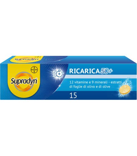 BAYER SpA Supradyn Ricarica 50+ - Integratore antiossidante ed energizzante per adulti oltre i 50 anni - 15 Compresse Effervescenti